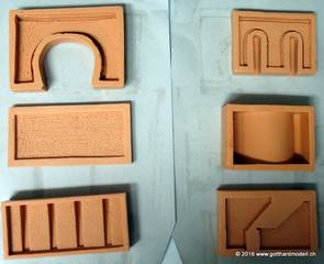 Im Internet habe ich diese Silikonformen zu erschwinglichen Preisen gefunden (das Teurste war wohl wieder mal der Schweizer Zoll) und gleich alle für mich in Frage kommenden Formen bestellt - und heute sind diese angekommen. Natürlich musste ich gleich mit allen Formen mal einen Probeabguss machen - die Resultate folgen. Das Tunnelportal entspricht übrigens ziemlich gut der NEM105, was ich vor der Bestellung mit dem Hersteller abgeklärt habe. Die ersten Abgüsse